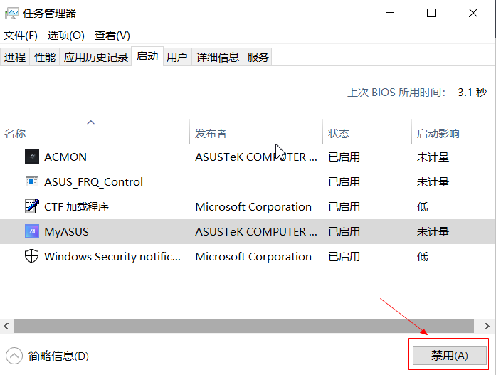 1、按CTRL + SHIFT + ESC键,启动任务管理器, 点击”启动“标签,选择要禁用的启动程序,单击“禁用”。