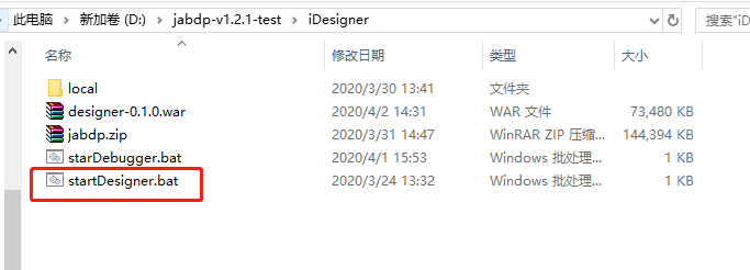 2.2、在这个文件夹下双击startDesigner.bat,这时就会启动设计器服务。