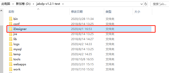 2.1、这一步与之前不同的是,无需去点击根目录下的启动服务.bat,而是双击进入iDesigner文件夹中。