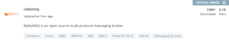 - 我们到dockerhub上搜索RabbitMQ镜像文件地址:https://hub.docker.com/search?q=rabbitmq&type=image, 选择官方镜像。