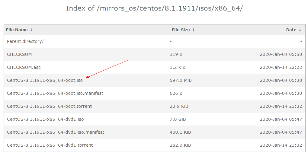 - centos8官网镜像下载地址http://isoredirect.centos.org/centos/8/isos/x86_64/ ,下载最小化镜像安装文件