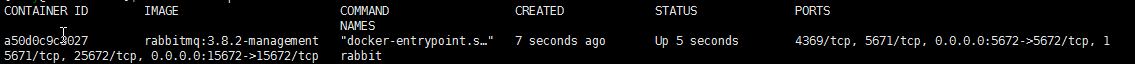 #方式一:默认guest 用户,密码也是 guest docker run -d --hostname my-rabbit --name rabbit -p 15672:15672 -p 5672:5672 rabbitmq:3.8.2-management #方式二:设置用户名和密码 docker run -d --hostname my-rabbit --name rabbit -e RABBITMQ_DEFAULT_USER=user -e RABBITMQ_DEFAULT_PASS=password -p 15672:15672 -p 5672:5672 rabbitmq:3.8.2-management -