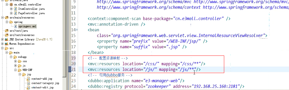 <mvc: resources location="/jsp/" mapping="/jsp/**">