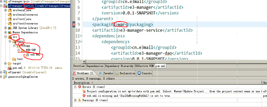 e3-mall-manager-web的pom.xml需要依赖service的接口了