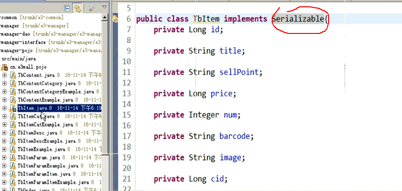 报错,网络传输必须实现序列化接口,因此为pojo中的Iterm要实现Serializable接口,逆向工程都可能需要网络传输,因此最好都去实现Serialiazble接口。