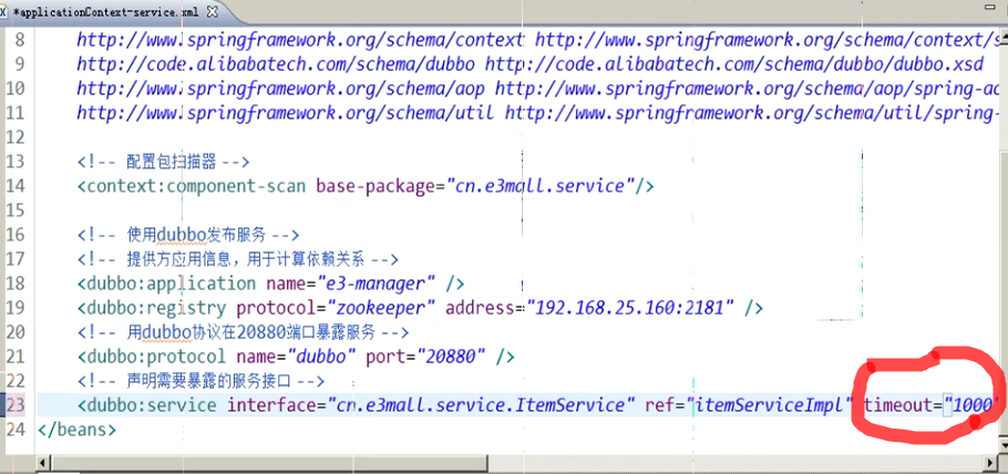 设置超时时间:在发布服务的的service的applicationContext.xml配置