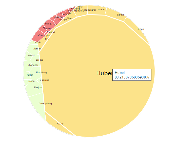 由于湖北省数据较多,其他省份数据不够显著。单纯按照东中西的分类不是很准确,这里选择排除疫情暴发源地省份的湖北省再进行可视化,结果如图。