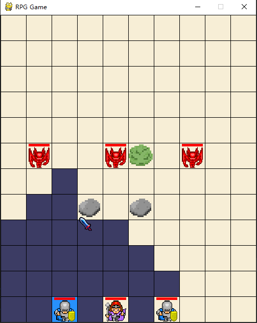 对于战旗类游戏的核心还是地图,虽然网上有六边形的地图教程但是没看太懂就做正方形的吧 首先定义函数,width 和 height 为地图的宽度和长度,bg_map 设置方格的背景颜色, entity_map 保存哪个方格上有生物。active_entity表示当前要行动的生物。