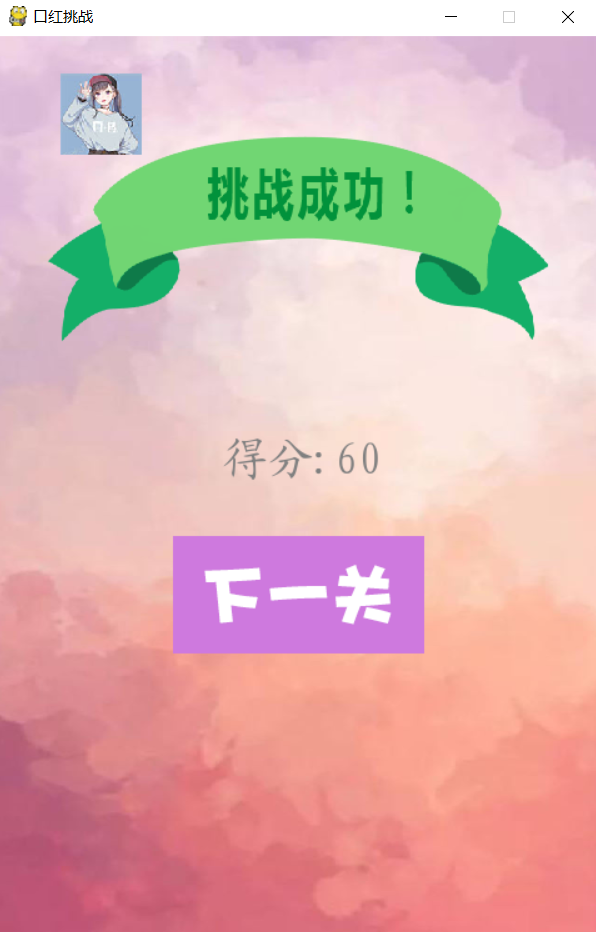 pygame.display.set_caption('口红挑战')
