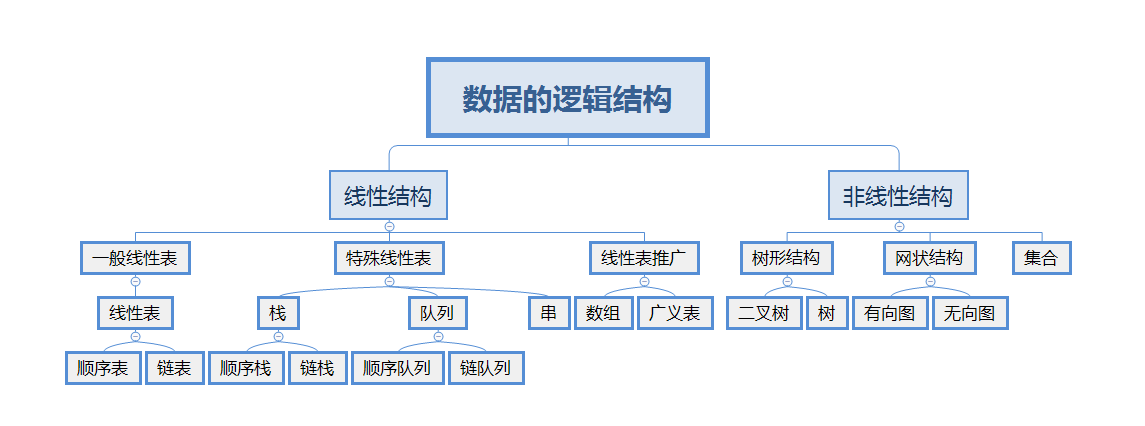 指反映数据元素之间的逻辑关系的数据结构,其中的逻辑关系是指数据元素之间的前后件关系,而与他们在计算机中的存储位置无关。逻辑结构包括: