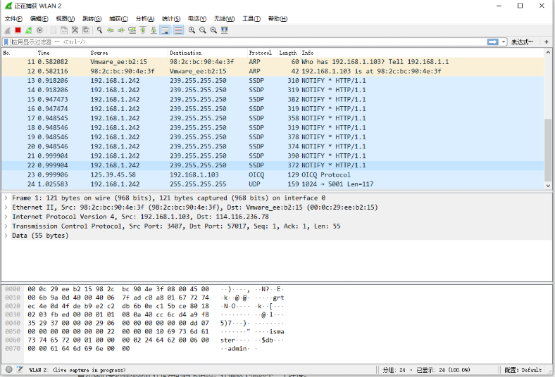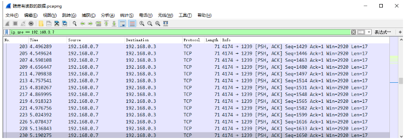 一般情况下,所有的设备都会有固定的IP地址,因此,我们可以利用wireshark的过滤功能,把我们要的数据找出来