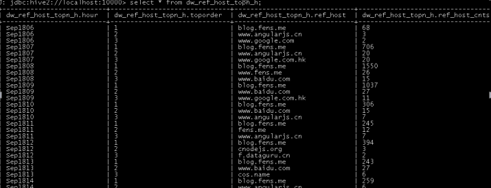 根据上述row_number的功能,可编写Hql取各小时的ref_host访问次数topn