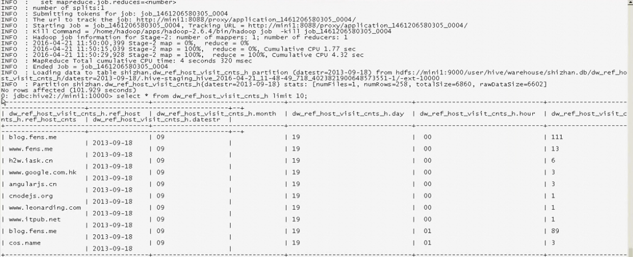 create table dw_ref_host_visit_cnts_h(ref_host string,month string,day string,hour string,ref_host_cnts bigint);创建表
