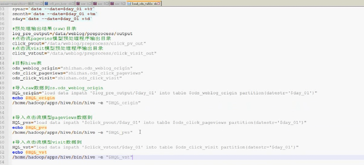 每天都有数据导入分区,不可能手动把数据导入hive中,需要写一个shell脚本load_ods_table.sh