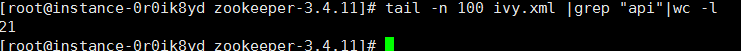 tail -n 100 ivy.xml |grep "api"|wc -l