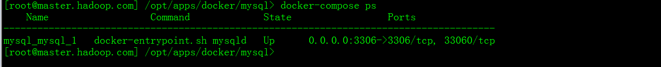 在当前文件目录下,执行docker-compose up -d 启动mysql