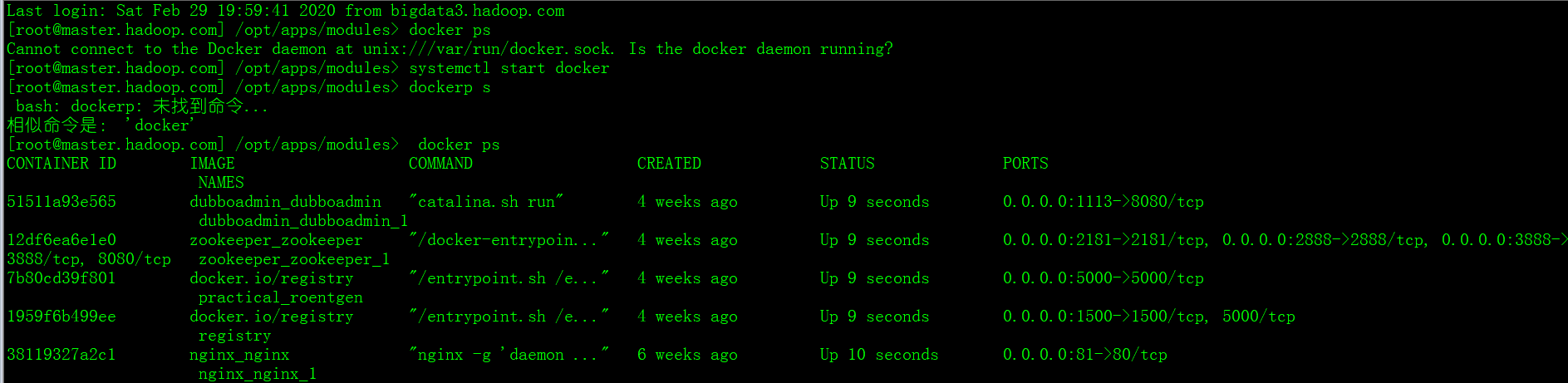 开始之前,需要将我们的基础实验环境搭建好,我们先启动一下虚拟机的docker服务,见如下图所示