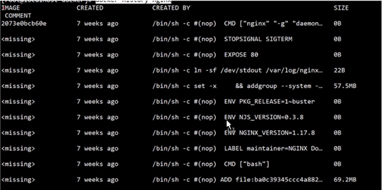 每一层镜像文件都有一个唯一id,镜像文件在不同的可运行镜像中可复用,可通过docker history nginx,来查看镜像的文件层次信息