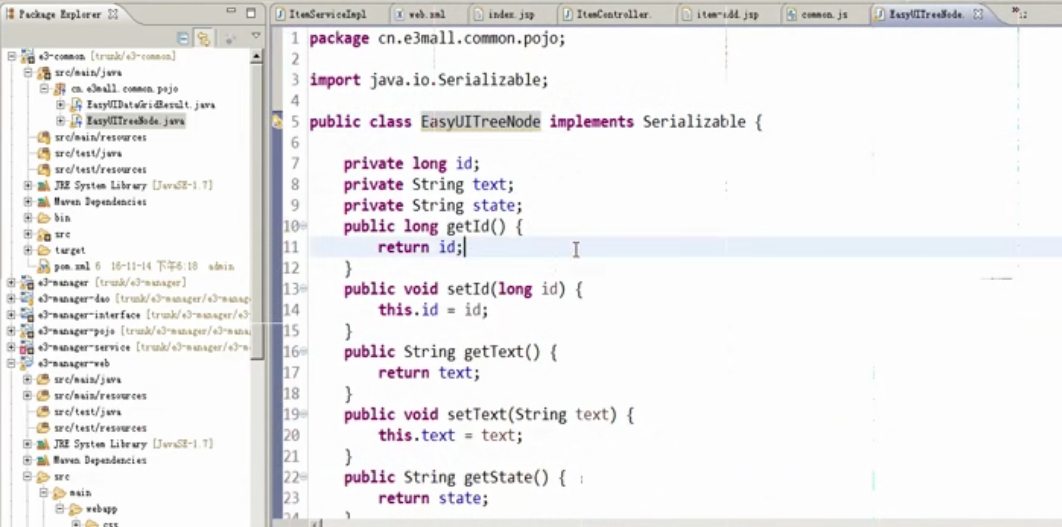 如何把格式生成呢?一般通过java转换而来的,创建一个list,每个list元素是个pojo,在common中创建pojo