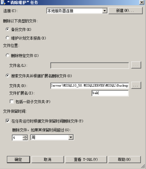 第二步:双击"清除维护"任务中的图标,我选择删除4周前的备份。注意,这里的文件夹和文件扩展名,就是上面你选择备份任务时指定的位置。