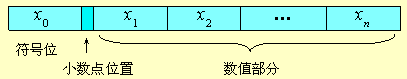定点小数是纯小数,约定的小数点位置在符号位之后、有效数值部分最高位之前。若数据 x 的形式为 x = x0.x1x2…xn ( 其中x0为符号位,x1~xn是数值的有效部分,也称为尾数, x1为最高有效位 ),则在计算机中的表示形式为: