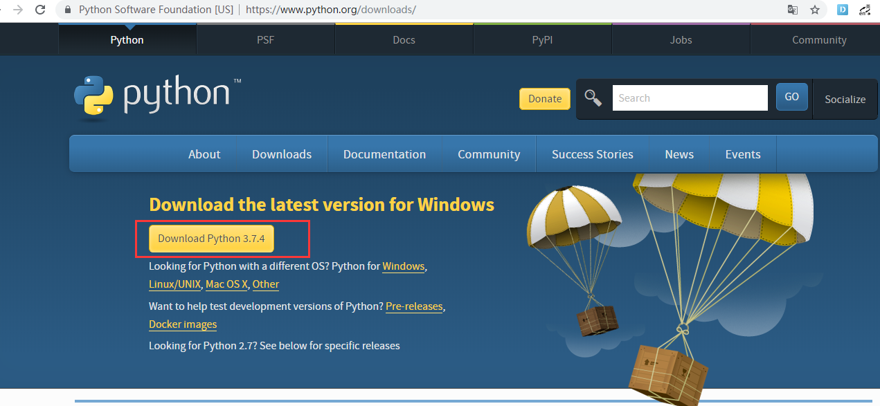 (2)进入网站下载:点击打开链接(或自己输入网址https://www.python.org/downloads/),进入之后如下图,选择图中红色圈中区域进行下载。