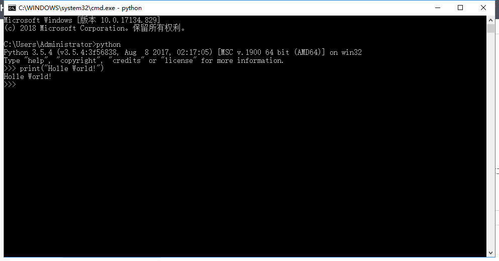 为了检查我们的python是否安装成功,可以在命令窗口中输入python进行查询,如显示下图的信息则表示成功了。