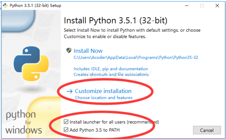 双击exe文件进行安装,如下图,并按照圈中区域进行设置,切记要勾选打钩的框,然后再点击Customize installation进入到下一步: