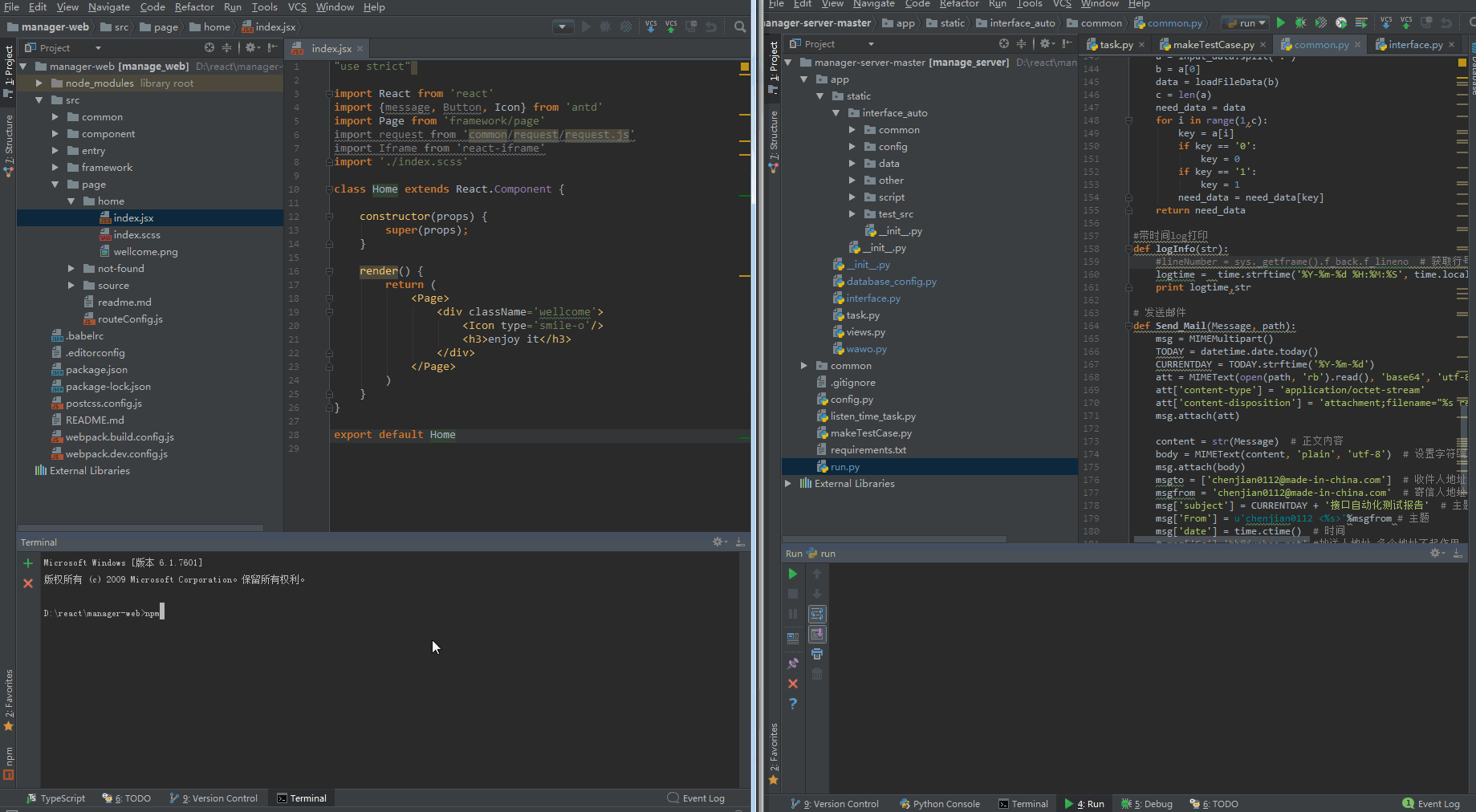 分为前后台两套代码: