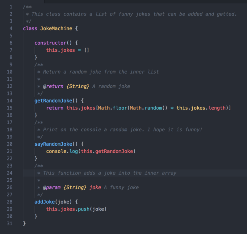 现在我们可以为JokeMachine类生成文档。首先,在全局安装jsDoc或则局部安装。我个人喜欢全局安装。