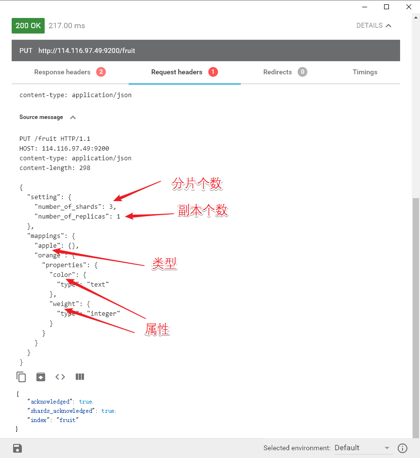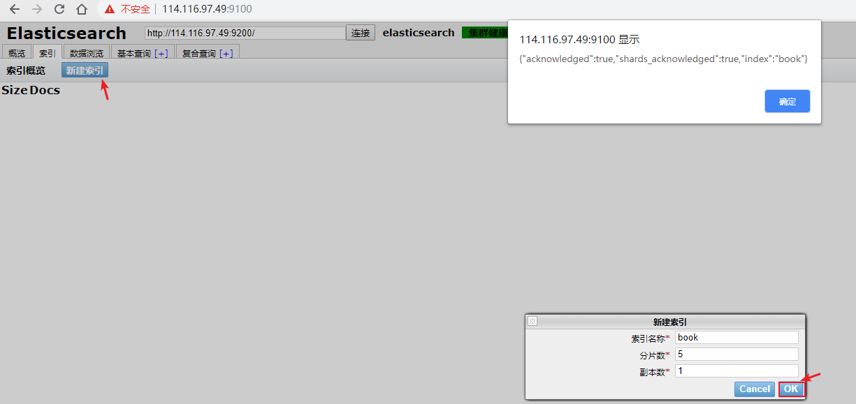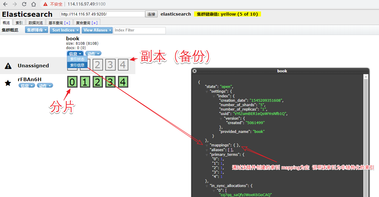 5.1.1 创建一个非结构化的索引,需要使用 PUT 请求。例如创建一个名为 book 的索引。