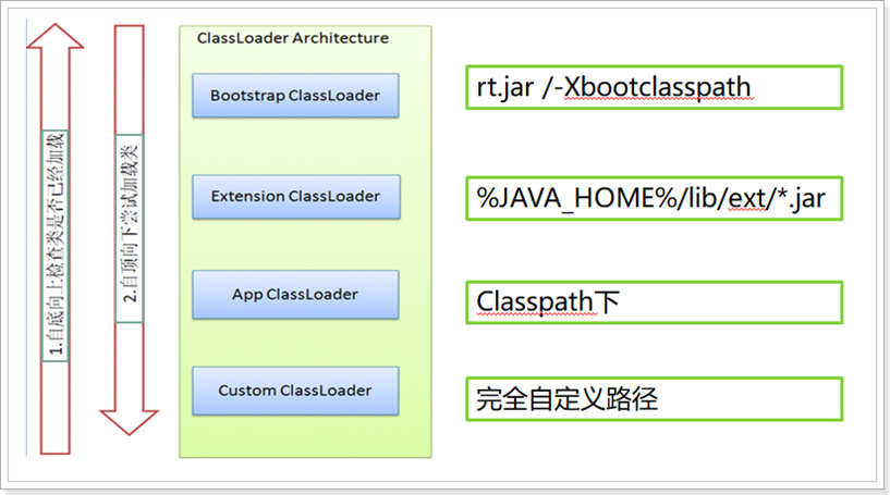 – 基本思想是,在顶层ClassLoader中,传入底层ClassLoader的实例