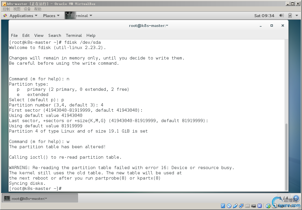 只有sda1,sda2.通过 fdisk /dev/sda 进行分区,生成一个新的逻辑分区 sda4