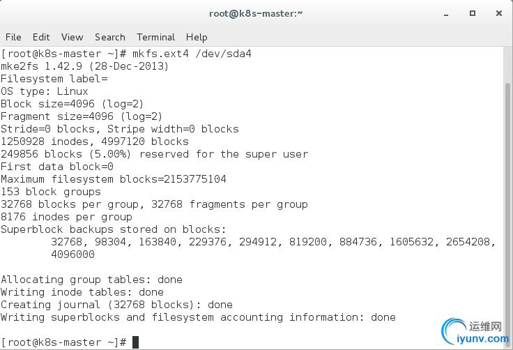 将分区 sda4 格式化为ext4格式