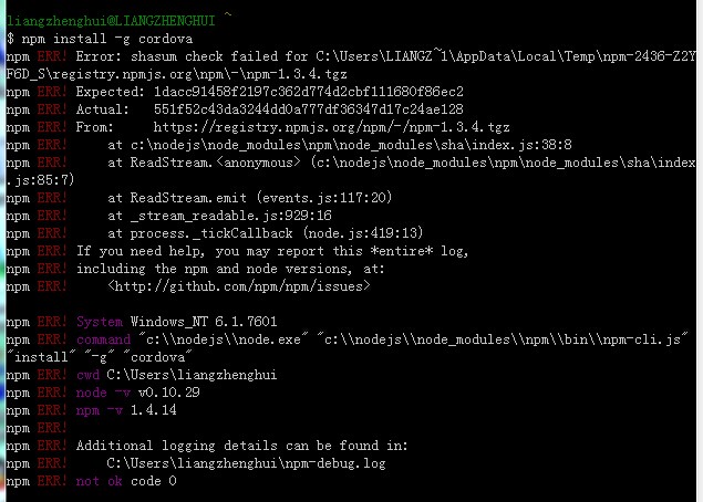 C:\>npm install -g cordova