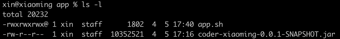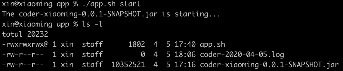 ./app.sh start coder-xiaoming-0.0.1-SNAPSHOT.jar