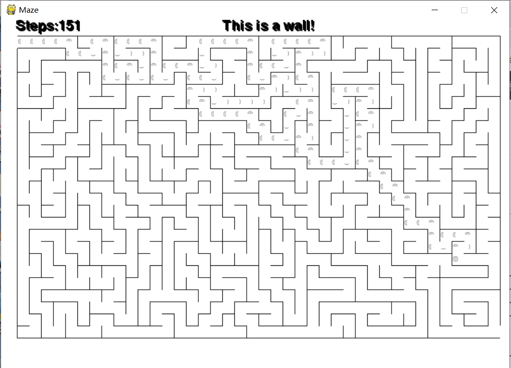 此迷宫主要通过上下左右键来控制行走,起点在左上角,终点在右下角 ,走到终点即为成功。界面显示迷宫,步数,及撞墙提醒。
