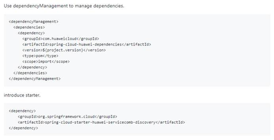 在关于如何接入使用spring-cloud-huawei上,我们利用了Spring Boot的starter机制,对Spring Cloud进行拓展。在使用时,只需要导入对应的starter依赖,就可以无代码侵入、只简单添加配置的快速接入ServiceComb引擎。