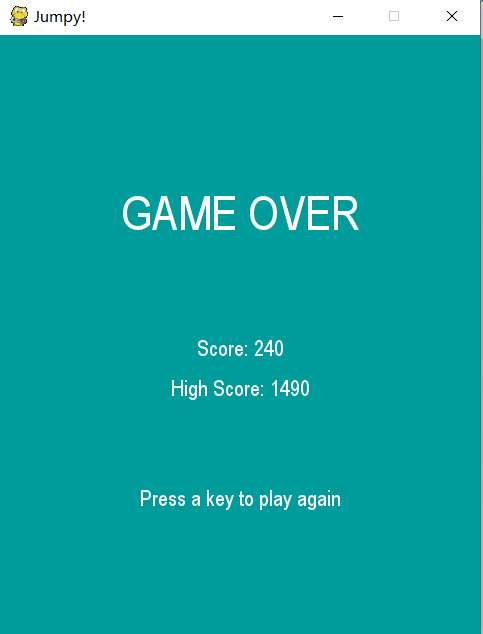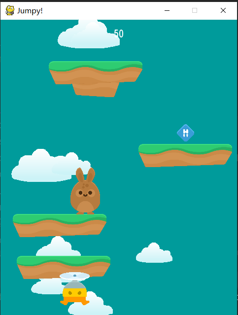 - 游戏规则:可以左右移动以及空格跳跃,如果获得了特殊道具,就可以跳跃比较远的距离,敌人会随机生成,如果碰到了飞行敌人,就会死亡,没有跳动平台上也会死亡。