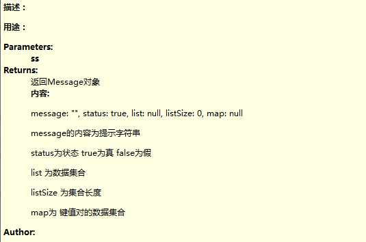 @return 返回Message对象<br/> <b>内容:</b><p>message: "", status: true, list: null, listSize: 0, map: null</p> <p>message的内容为提示字符串</p> <p>status为状态 true为真 false为假</p> <p>list 为数据集合</p> <p>listSize 为集合长度</p> <p>map为 键值对的数据集合</p>