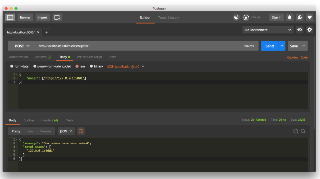 让我们将这两个端点注册到我们的API中,一个用于添加相邻节点,另一个用于解决冲突: