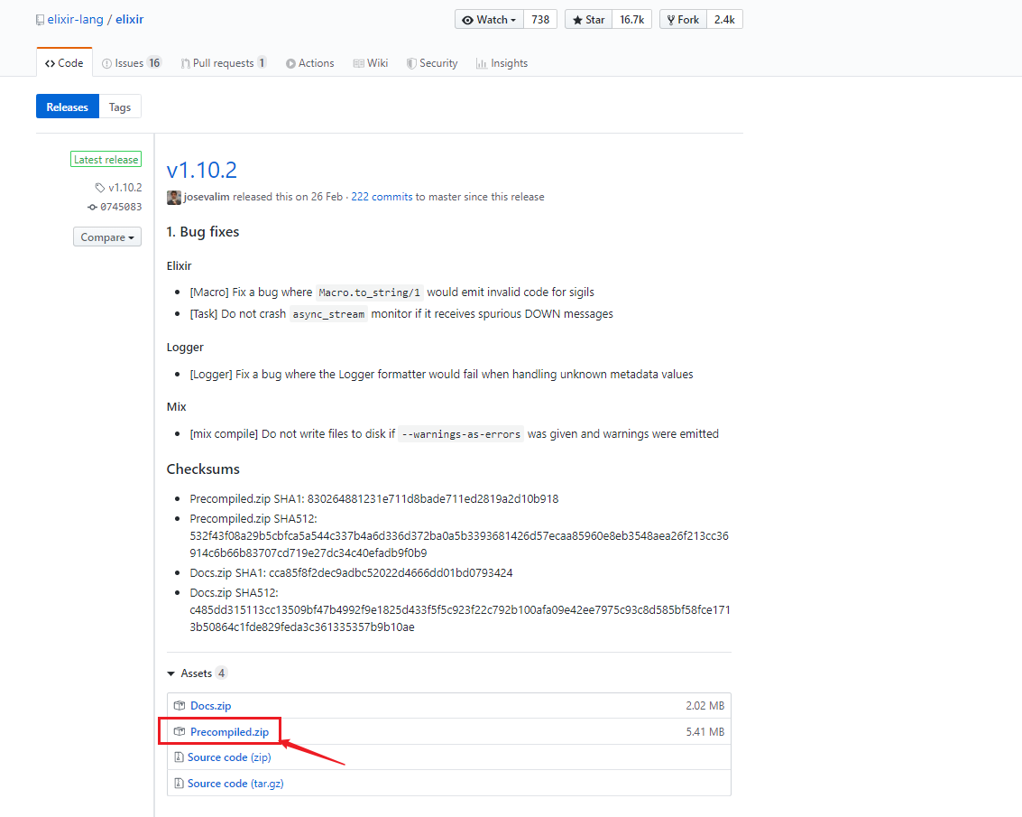 官方地址下载: https://github.com/elixir-lang/elixir/releases
