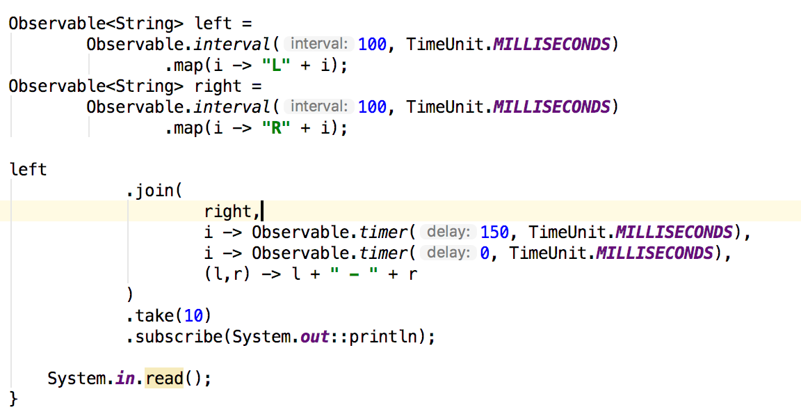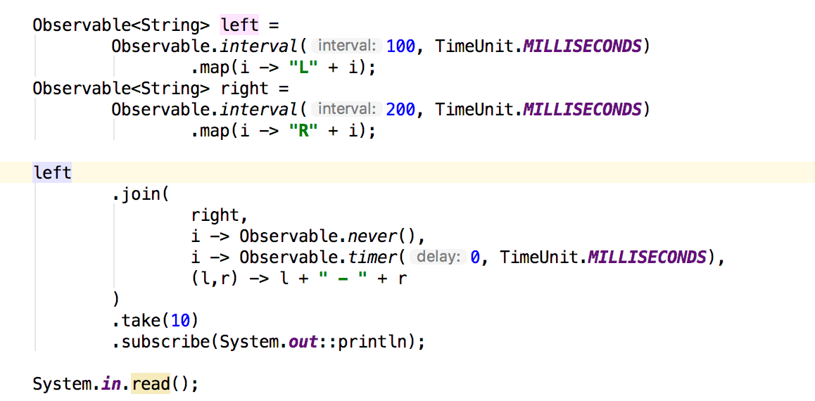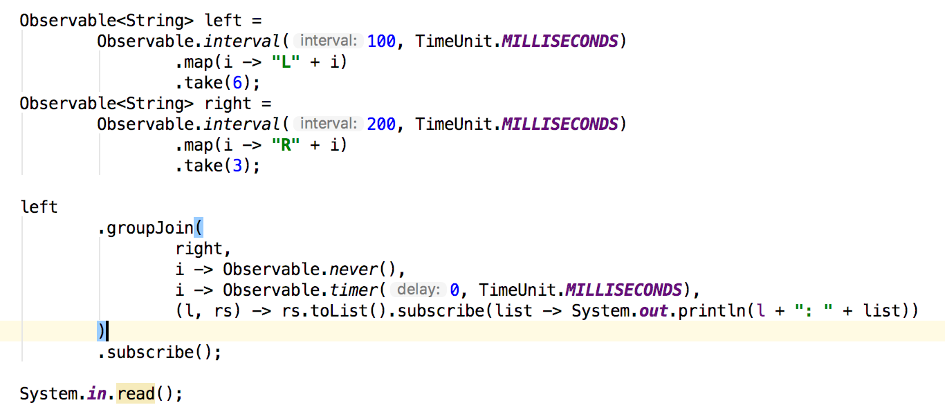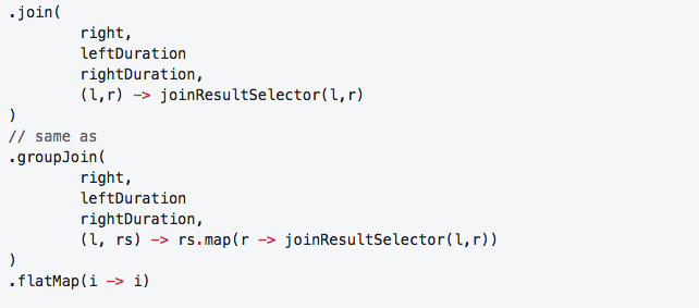 join允许您将两个序列中的项组合在一起。我们已经看过zip,它根据index对值进行配对。join允许您根据时间配对值。让我们先看一下方法签名: