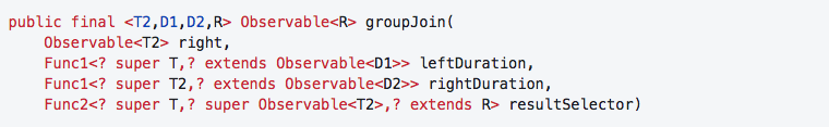 一旦检测到一对,join就会将两个值传递给结果选择器并发出结果。groupJoin更进了一步。让我们从方法签名开始吧。