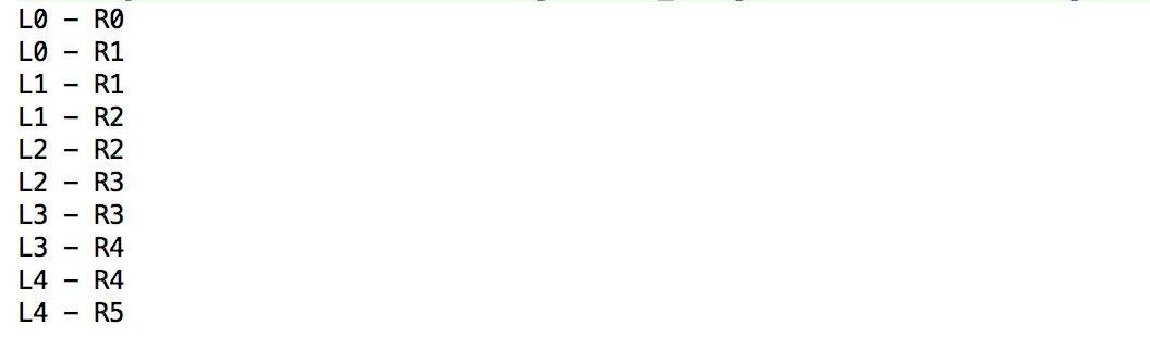 当左值的窗口永远不会结束时,这意味着左序列中的每个值都将与从右序列后面的每个值配对。因为这里右侧序列的频率是左侧序列的一半,在两个右侧值之间,左侧还有两个窗口打开。第一个右边的值与前两个左边的值配对,第二个右边的值与前四个左边的值配对,第三个右边的值与第六配对,依此类推。