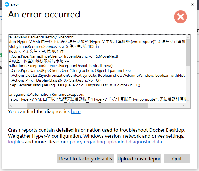 Unable to stop Hyper-V VM: 由于以下错误无法启动服务“Hyper-V 主机计算服务 (vmcompute)”: 无法启动计算机“.”上的服务 vmcompute。