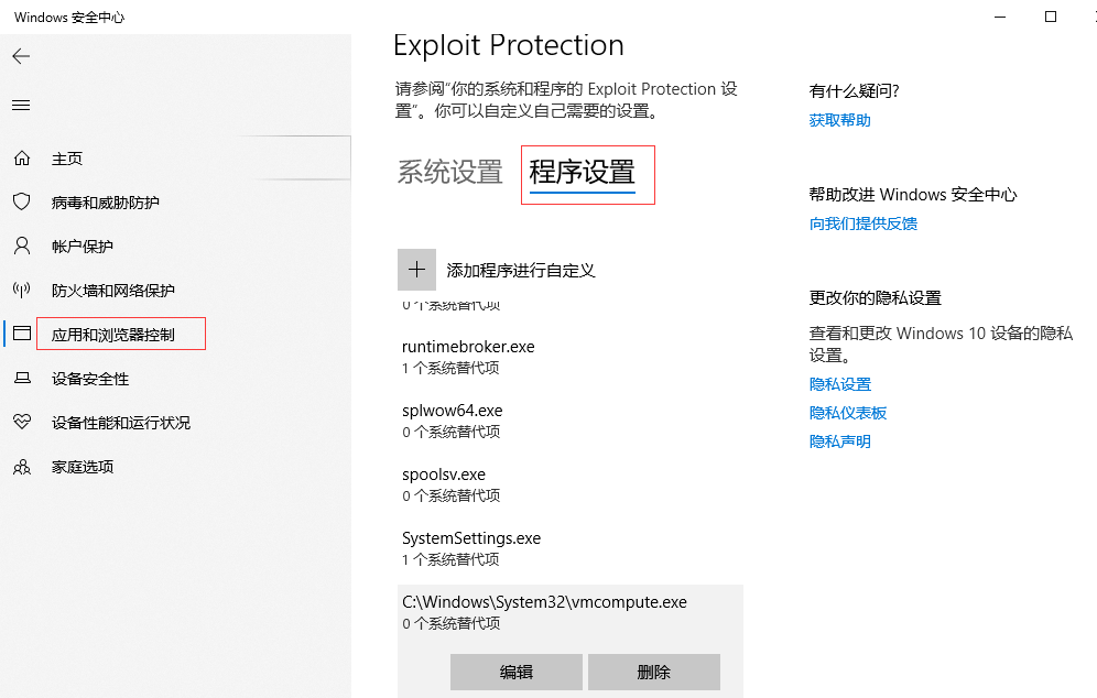 去除控制流保护(CFG)中替代系统设置前面的勾后,hyper-v管理器正常。容器成功启动。