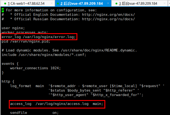 查看nginx日志配置项,vi nginx.conf