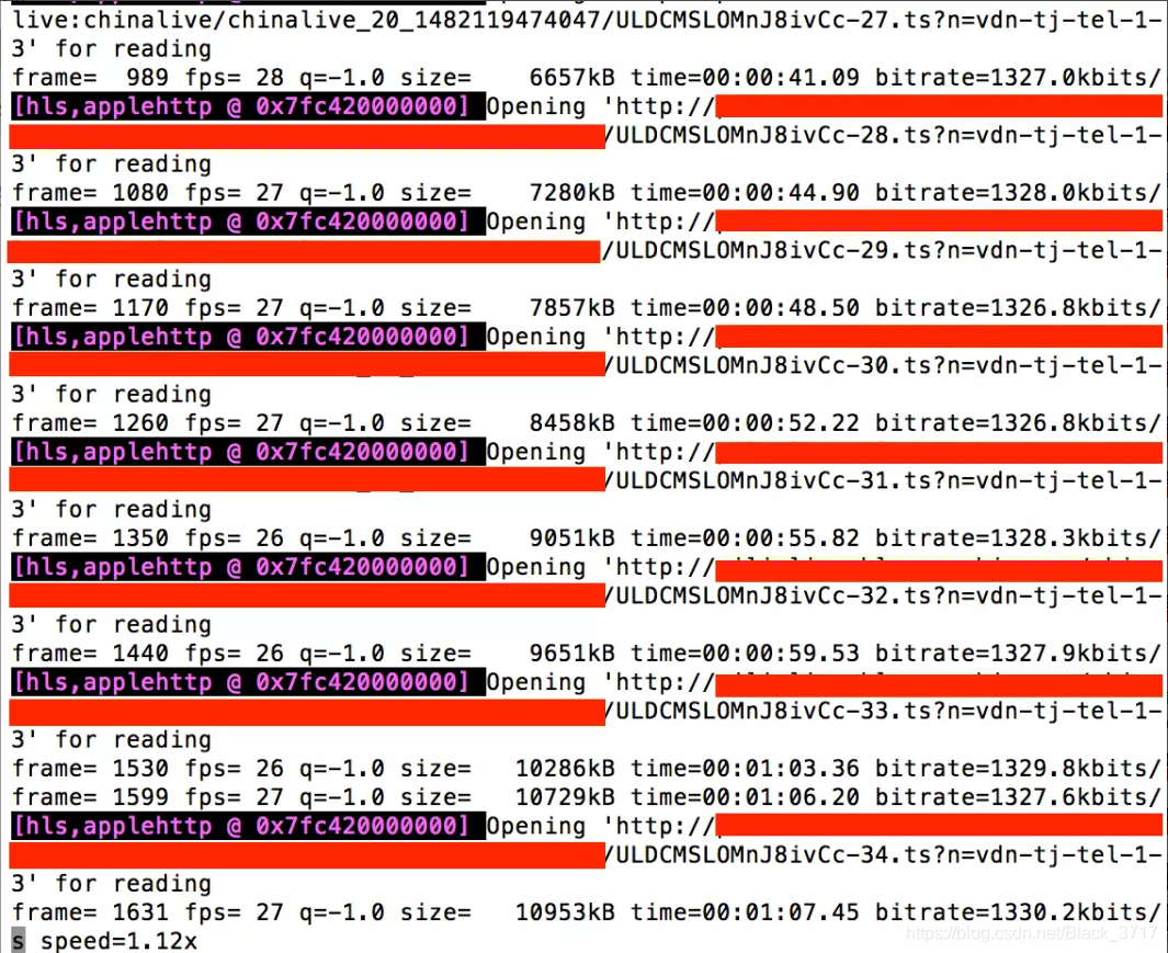 通过使用ffmpeg命令将直播视频流实时保存至本地,从而可以监测到当前直播视频流的状态。在终端运行