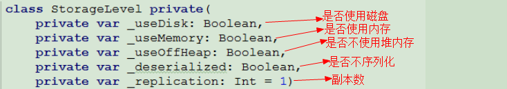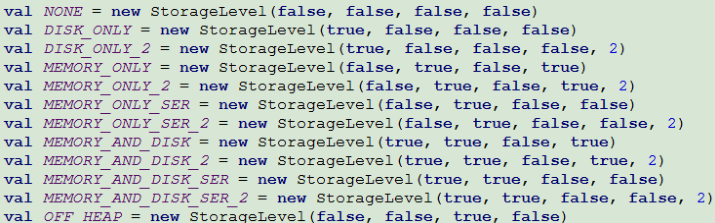 Spark缓存策略类是StorageLevel,其有如下几个变量